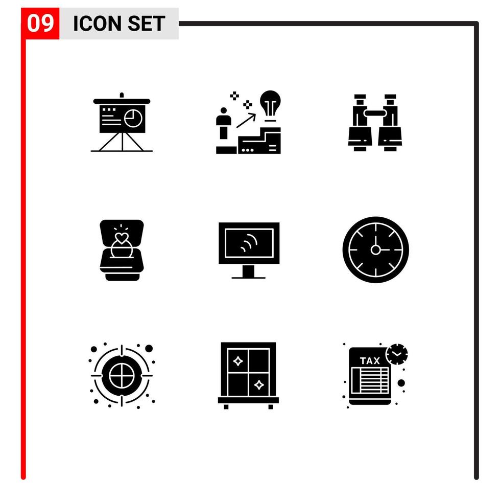 Set of 9 Modern UI Icons Symbols Signs for computer heart solution love vision Editable Vector Design Elements