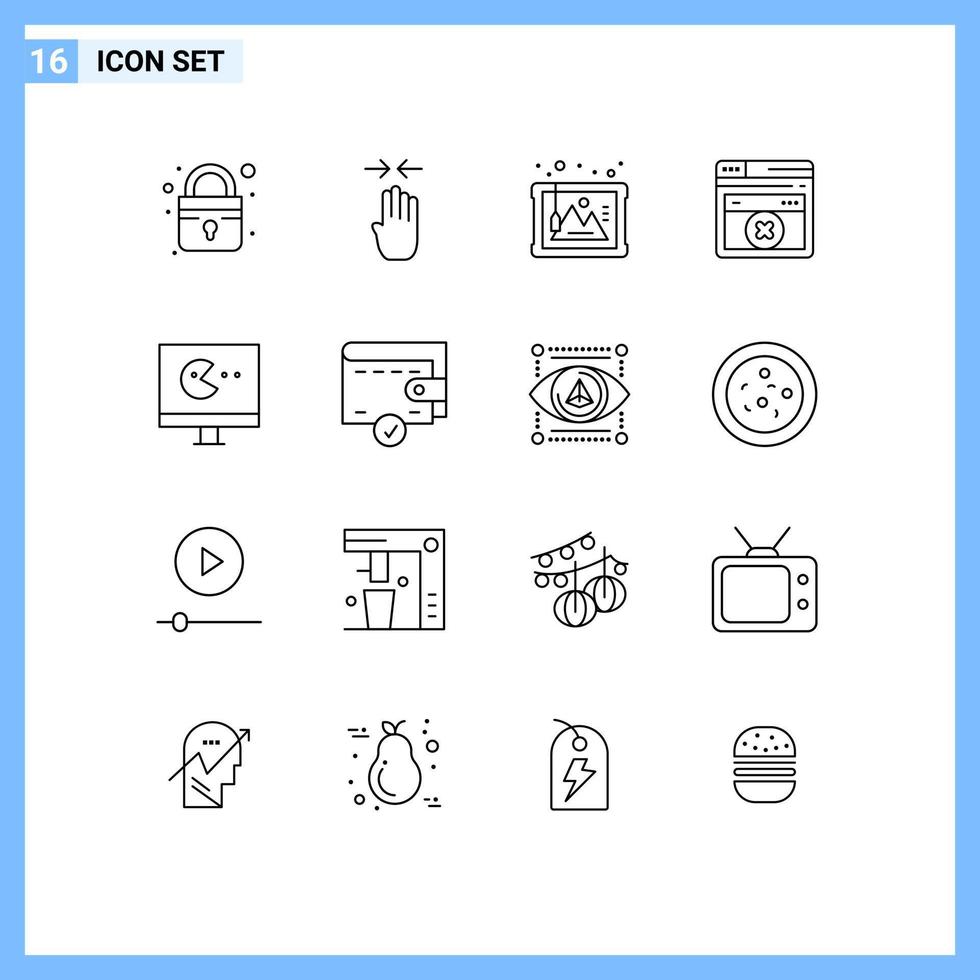 Modern Set of 16 Outlines Pictograph of complete monitor art game web Editable Vector Design Elements