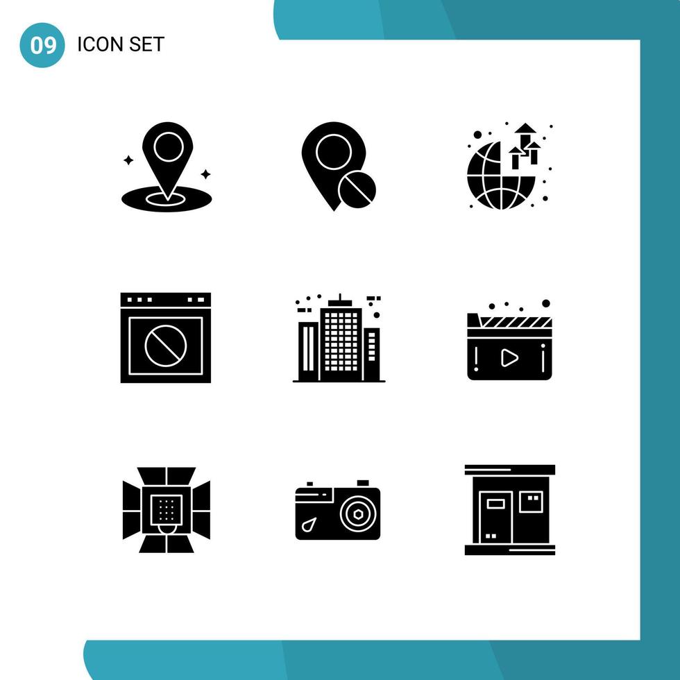 Set of 9 Vector Solid Glyphs on Grid for architect web global warning app Editable Vector Design Elements