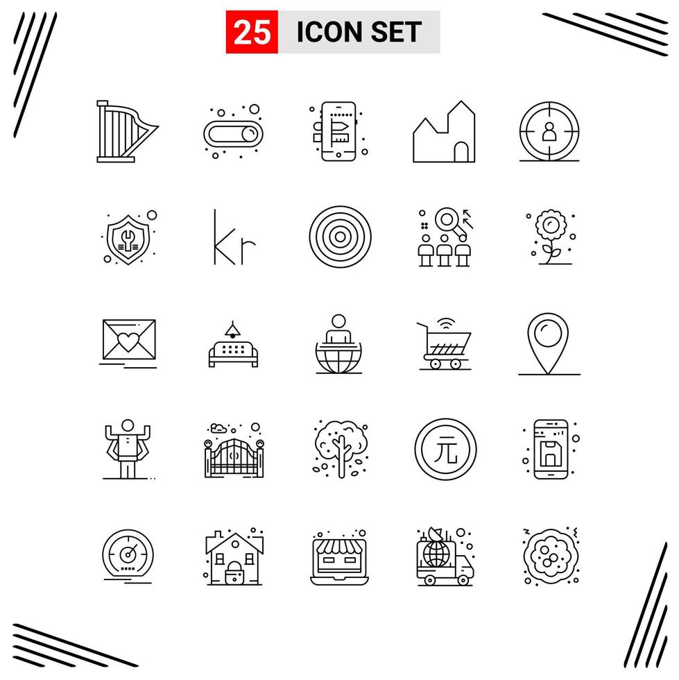 25 Icons Line Style. Grid Based Creative Outline Symbols for Website Design. Simple Line Icon Signs Isolated on White Background. 25 Icon Set. vector