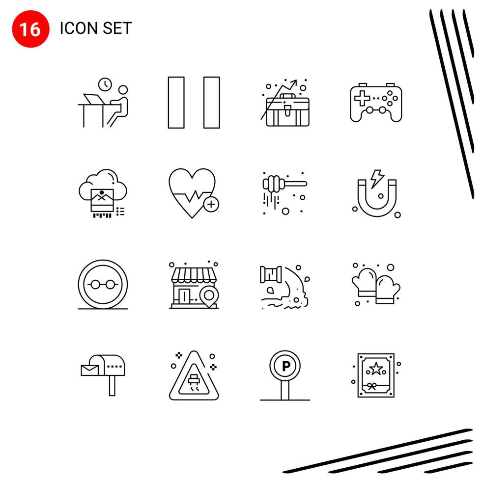 16 Universal Outlines Set for Web and Mobile Applications cloud jpg concept photo game Editable Vector Design Elements