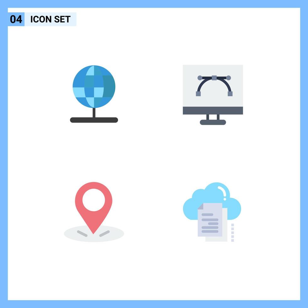 Mobile Interface Flat Icon Set of 4 Pictograms of globe gps world development pin Editable Vector Design Elements