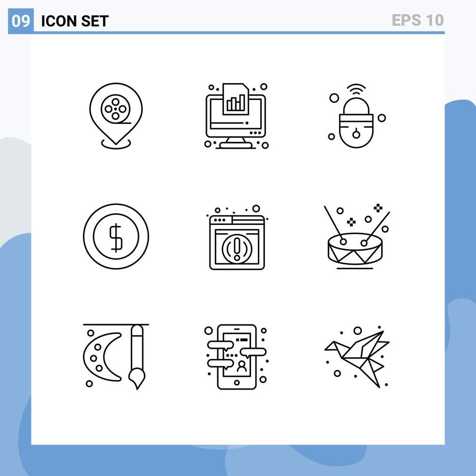 Modern Set of 9 Outlines Pictograph of information ecommerce internet of things coin wifi Editable Vector Design Elements