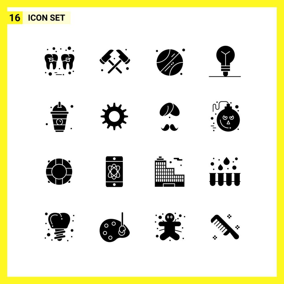 16 Icon Set. Simple Solid Symbols. Glyph Sign on White Background for Website Design Mobile Applications and Print Media. vector