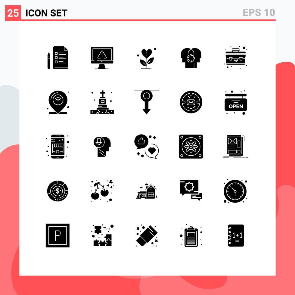 25 Solid Glyph concept for Websites Mobile and Apps setting control security brain heart Editable Vector Design Elements