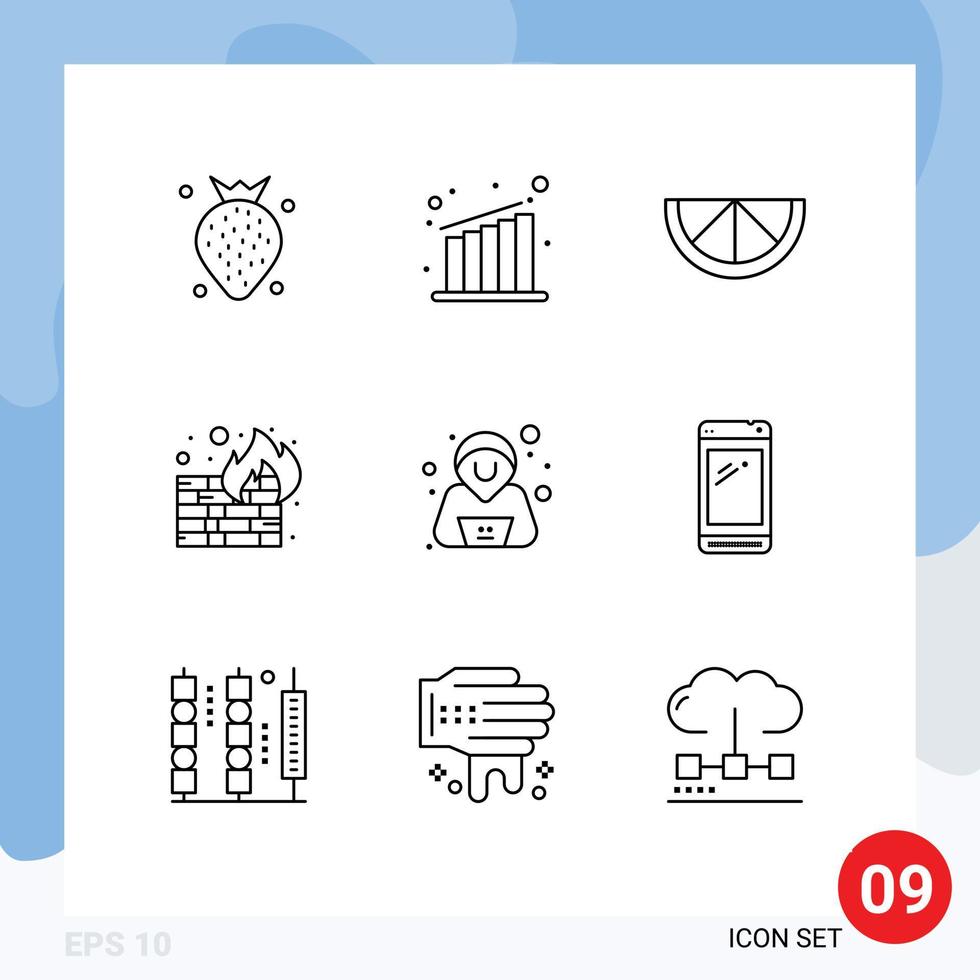 Modern Set of 9 Outlines and symbols such as smart phone security fruit hacker wall Editable Vector Design Elements Free Vector
