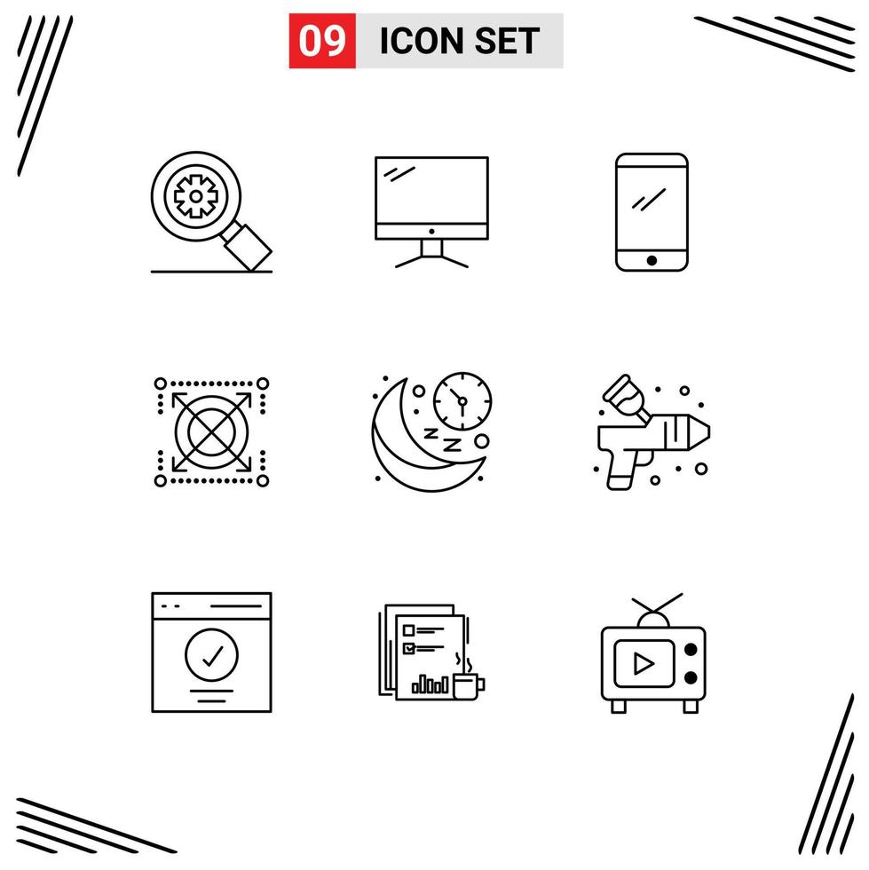 Pack of 9 Modern Outlines Signs and Symbols for Web Print Media such as pack target pc web android Editable Vector Design Elements