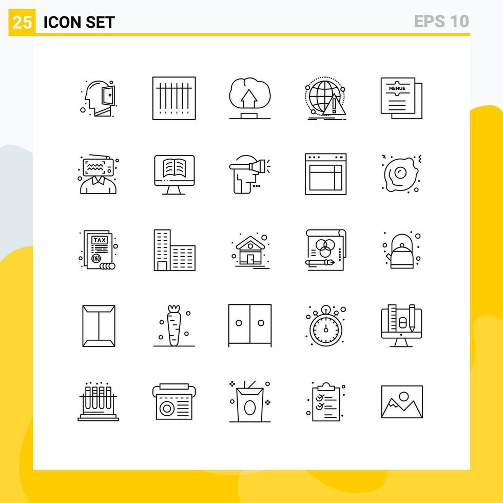 Mobile Interface Line Set of 25 Pictograms of food cafe upload virus attack Editable Vector Design Elements
