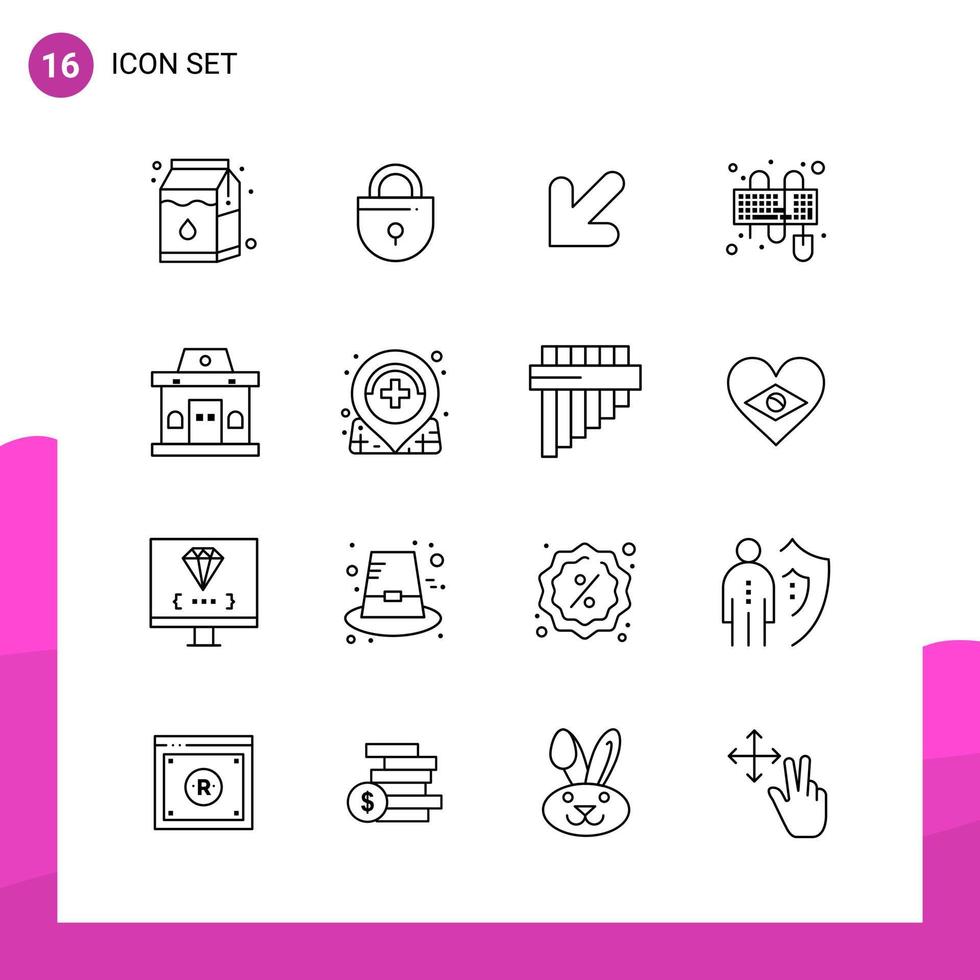 Outline Icon set. Pack of 16 Line Icons isolated on White Background for responsive Website Design Print and Mobile Applications. vector
