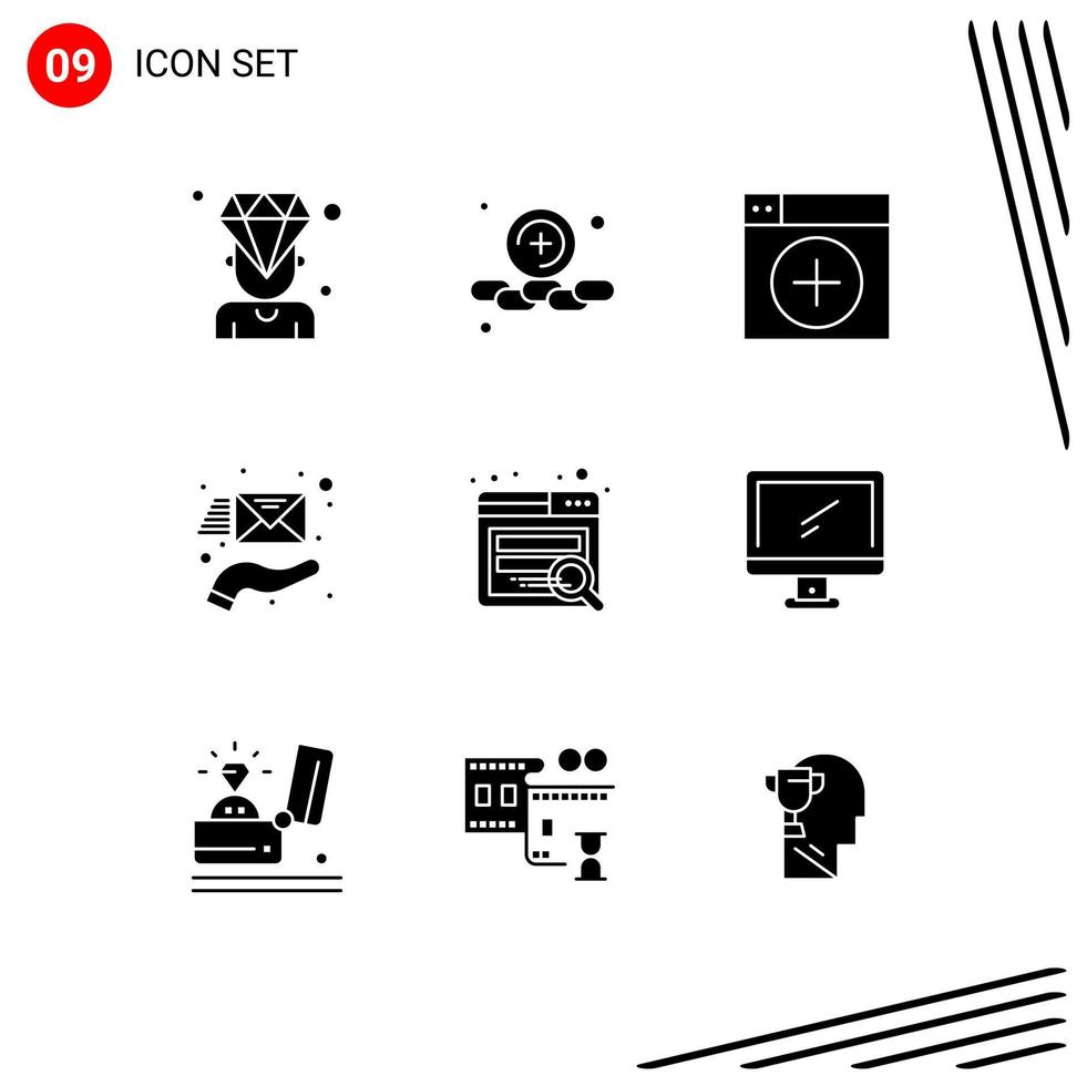 User Interface Pack of 9 Basic Solid Glyphs of seo support window hand email Editable Vector Design Elements Free Vector