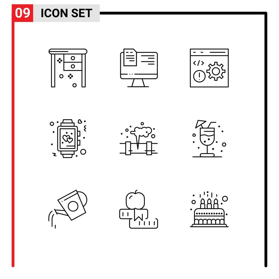 9 Universal Outlines Set for Web and Mobile Applications wedding time browser love programming Editable Vector Design Elements