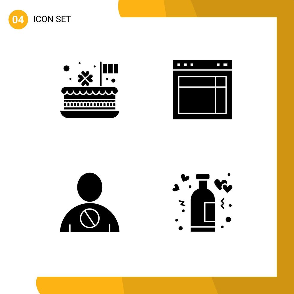 User Interface Pack of 4 Basic Solid Glyphs of cake website festival layout blocked Editable Vector Design Elements Free Vector