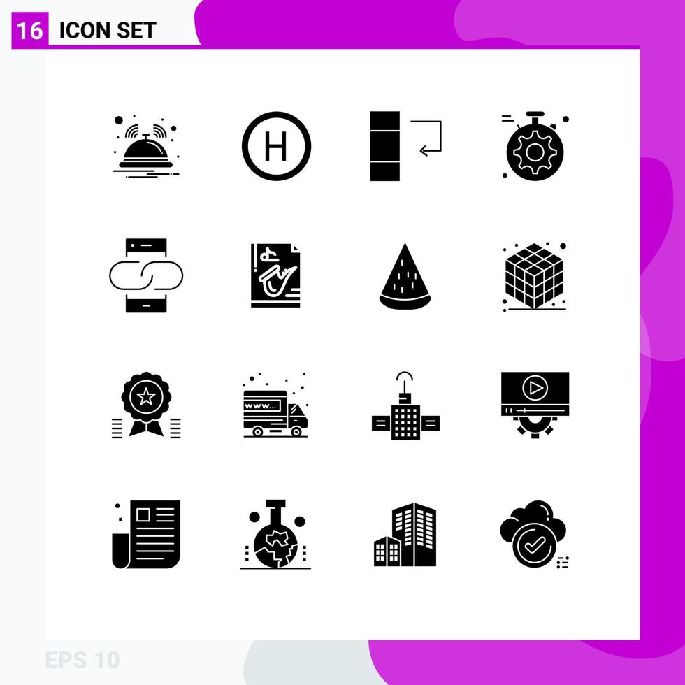 Mobile Interface Solid Glyph Set of 16 Pictograms of mobile link data conversation setting Editable Vector Design Elements Free Vector