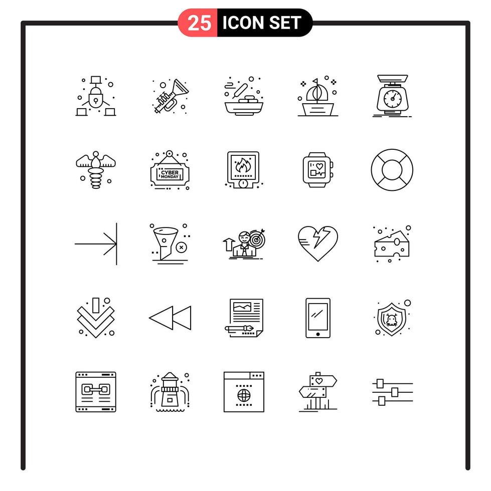 Pack of 25 Modern Lines Signs and Symbols for Web Print Media such as implementation ship bowl sail boat Editable Vector Design Elements