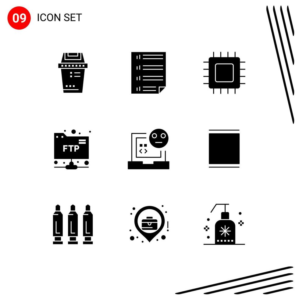 9 User Interface Solid Glyph Pack of modern Signs and Symbols of bad folder page account gadget Editable Vector Design Elements