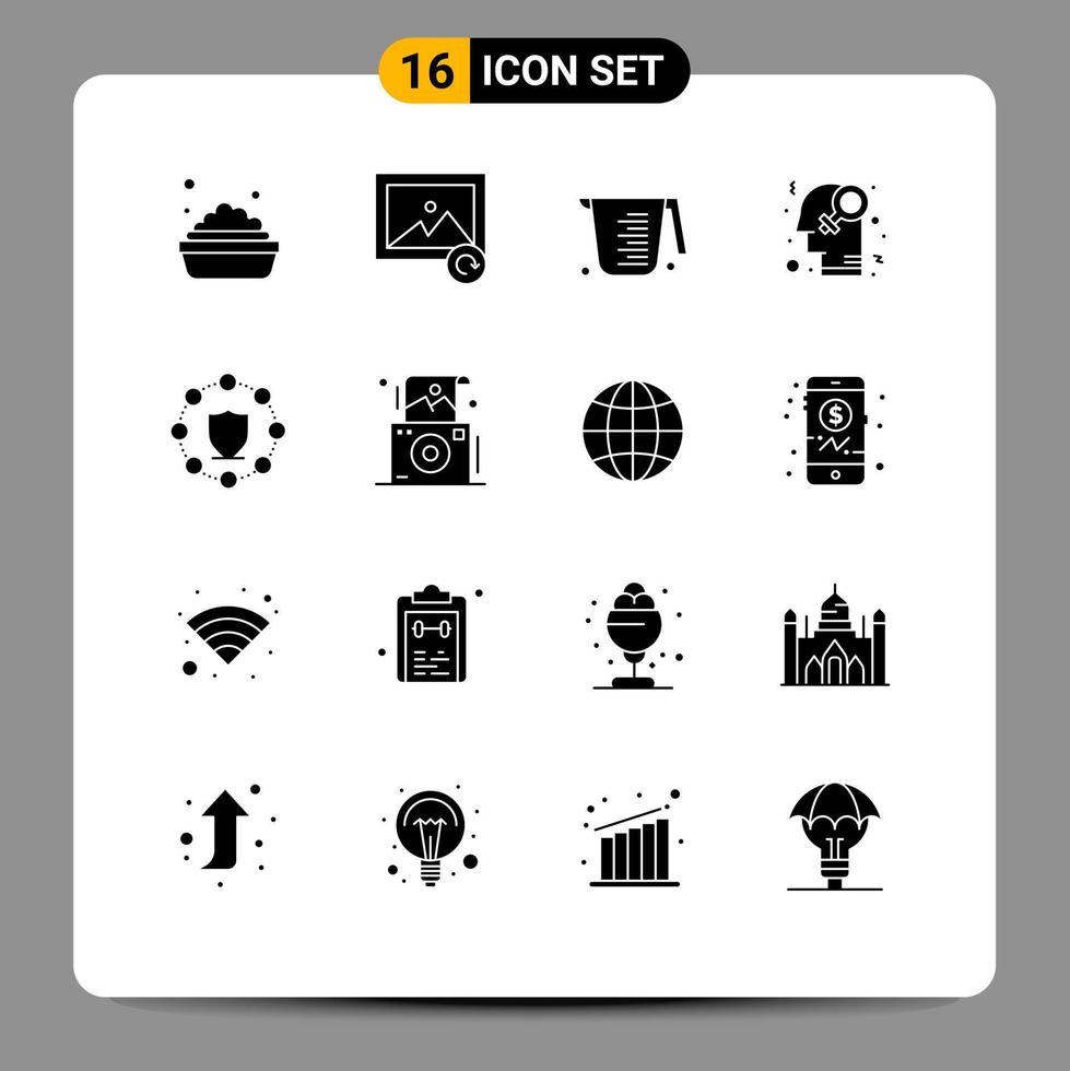 Editable Vector Line Pack of 16 Simple Solid Glyphs of network protect jug computing homophile Editable Vector Design Elements Free Vector