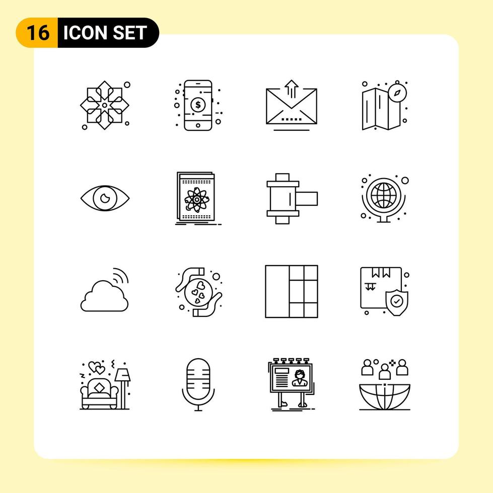 Group of 16 Modern Outlines Set for basic map shop location upload Editable Vector Design Elements