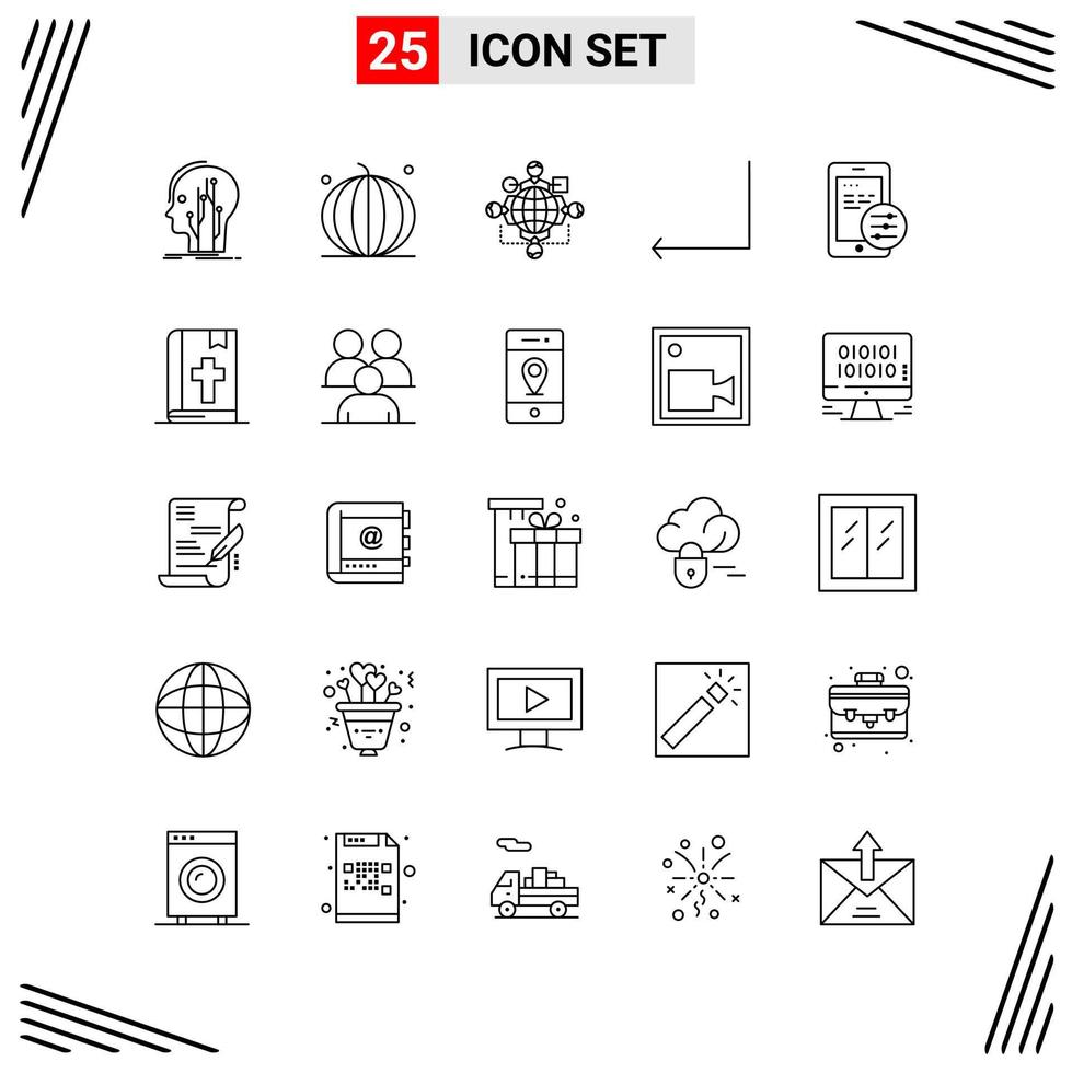 25 Icons Line Style. Grid Based Creative Outline Symbols for Website Design. Simple Line Icon Signs Isolated on White Background. 25 Icon Set. vector