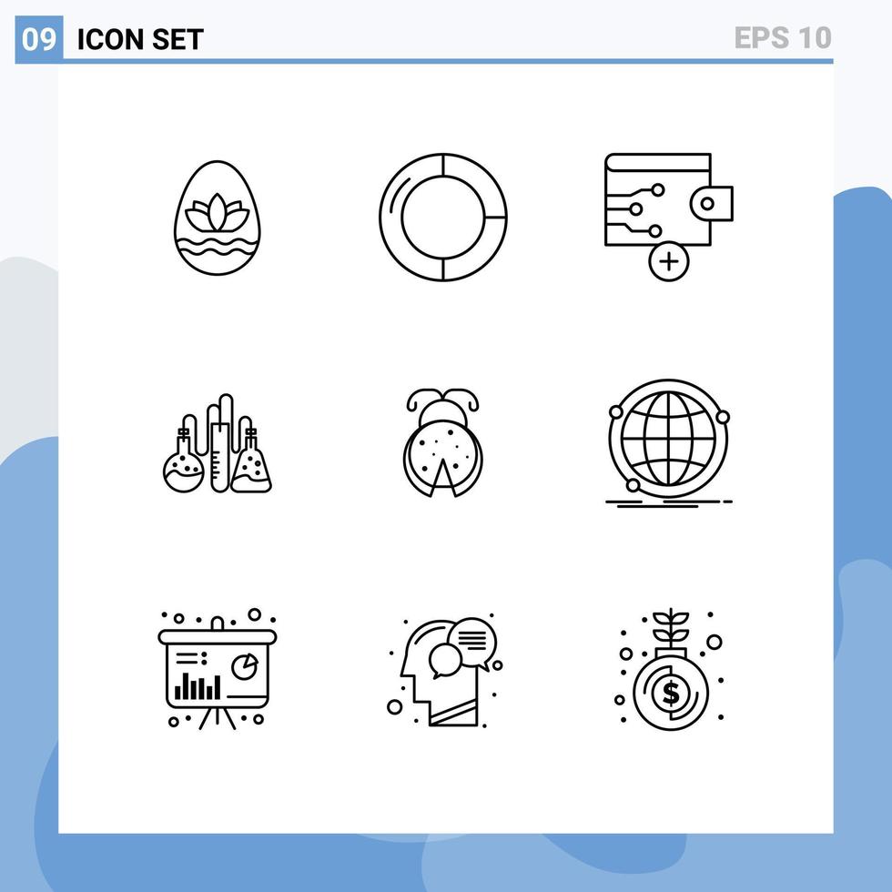 Group of 9 Modern Outlines Set for ladybug bug business science dope Editable Vector Design Elements