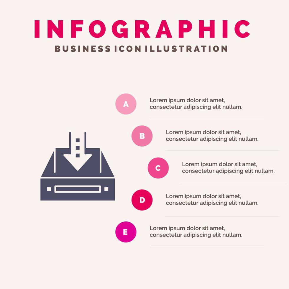 Inbox Box Cabinet Document Empty Project  Solid Icon Infographics 5 Steps Presentation Background vector