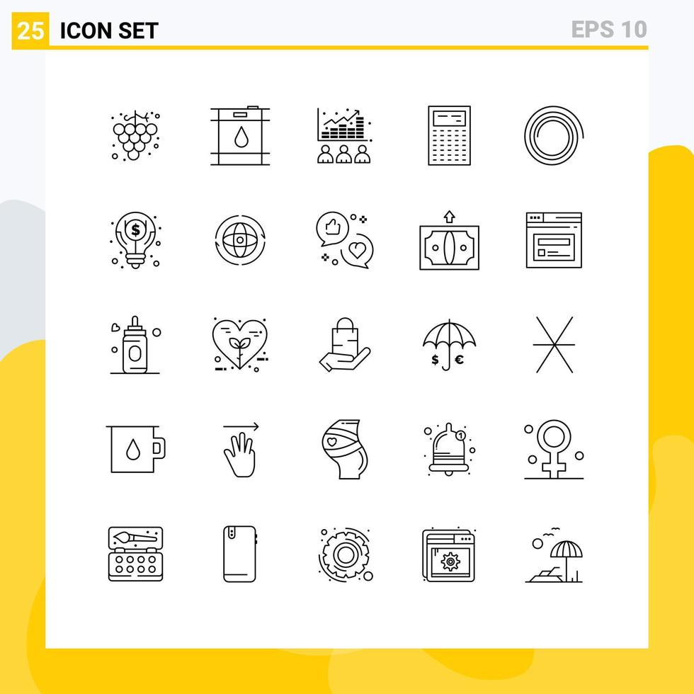 25 Universal Lines Set for Web and Mobile Applications business shape index math calculator Editable Vector Design Elements