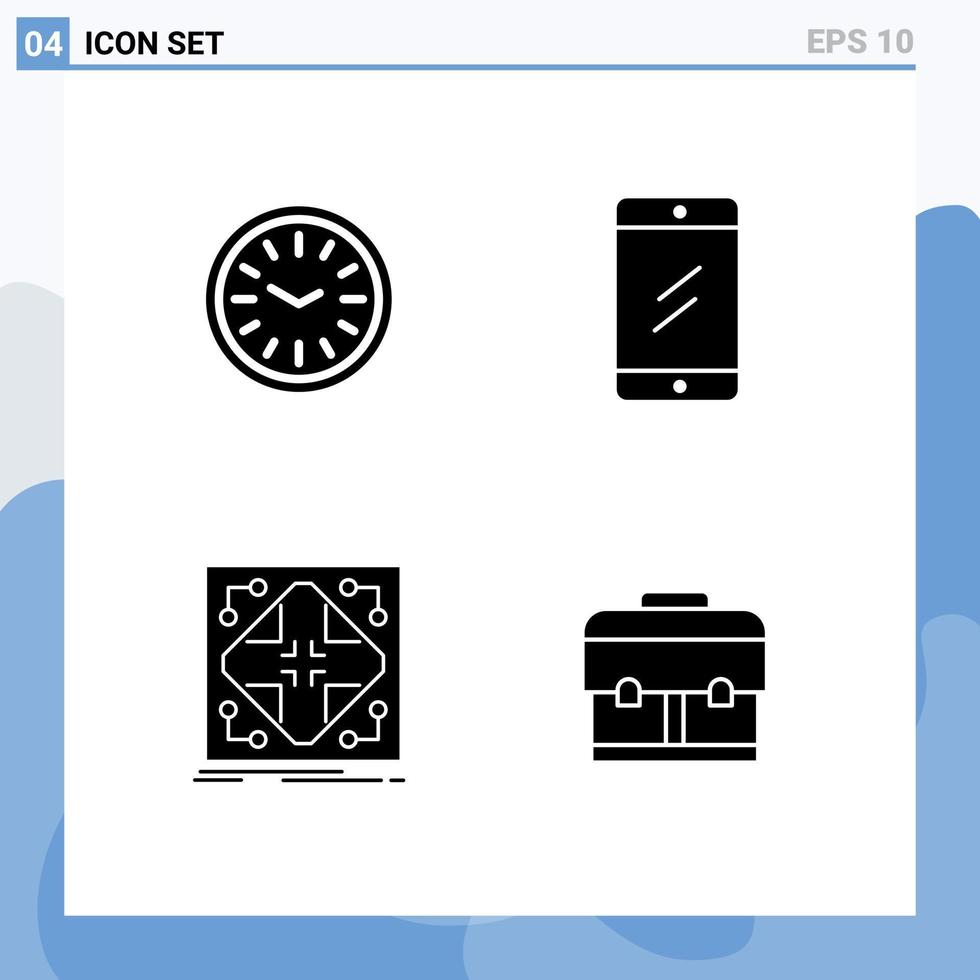 Set of Vector Solid Glyphs on Grid for clock network mobile study grid Editable Vector Design Elements Free Vector