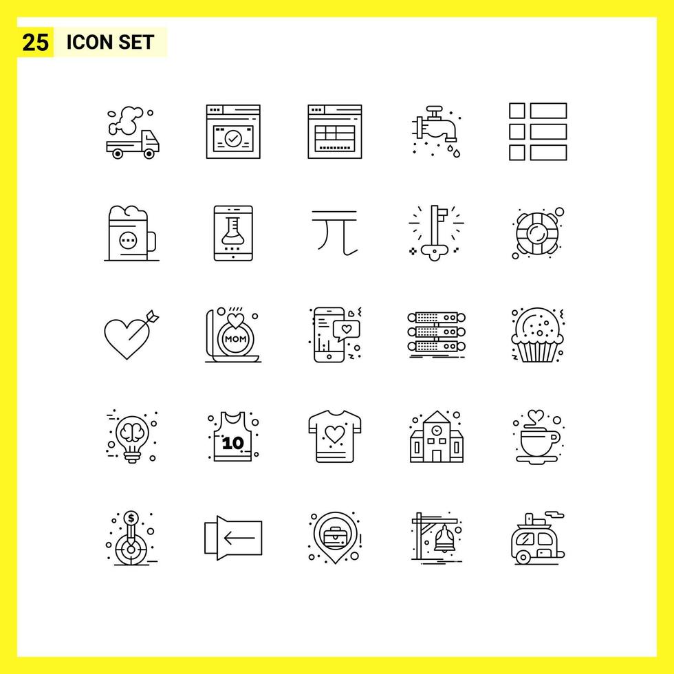25 Universal Lines Set for Web and Mobile Applications alcohol image website frame plumbing Editable Vector Design Elements