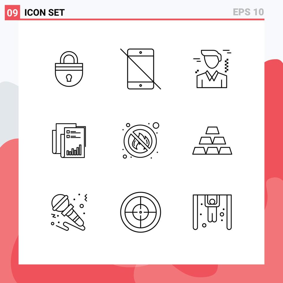 9 Thematic Vector Outlines and Editable Symbols of data audit pc analytics office Editable Vector Design Elements Free Vector