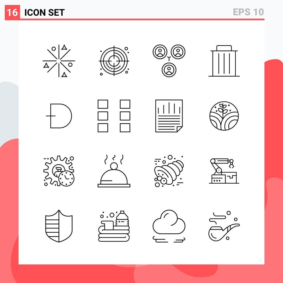 Collection of 16 Vector Icons in Line style. Modern Outline Symbols for Web and Mobile. Line Icon Sign Isolated on White Background. 16 Icons.