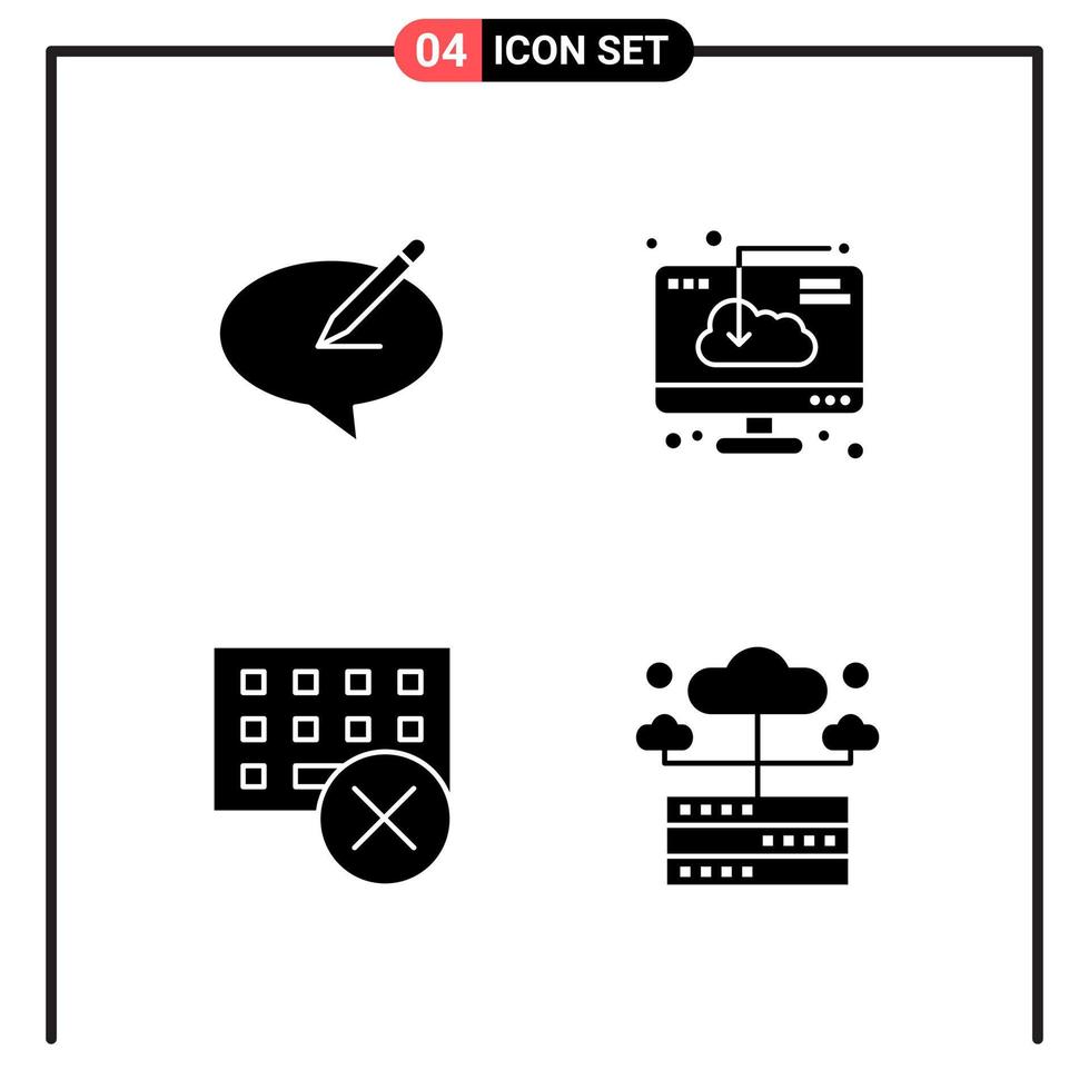 Set of 4 Solid Style Icons for web and mobile. Glyph Symbols for print. Solid Icon Signs Isolated on White Background. 4 Icon Set. vector
