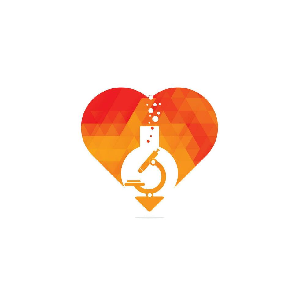 Lab heart shape concept logo vector. Lab template. Science lab logo. Beaker Lab round flask with chemical substance inside make Bubbles for logo design. Pro Vector