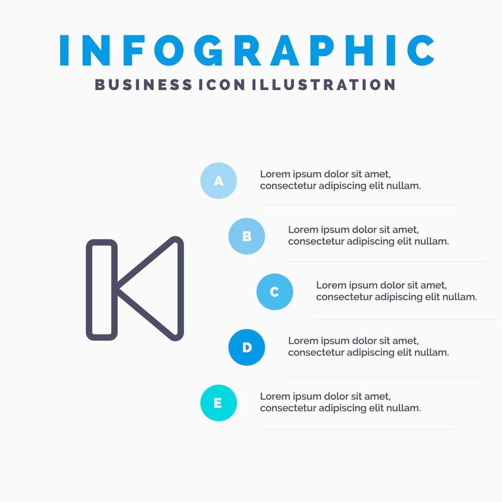 Back Beginning Control Media Start Line icon with 5 steps presentation infographics Background vector