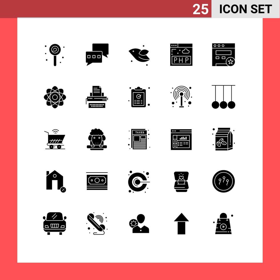 25 User Interface Solid Glyph Pack of modern Signs and Symbols of atom seo bird bookmark php Editable Vector Design Elements