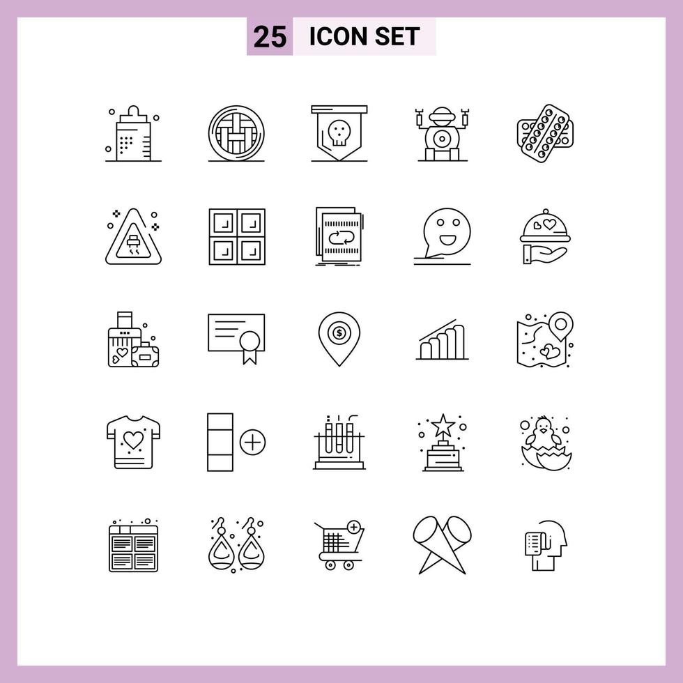 User Interface Pack of 25 Basic Lines of medicine technology pie robot horror Editable Vector Design Elements Free Vector