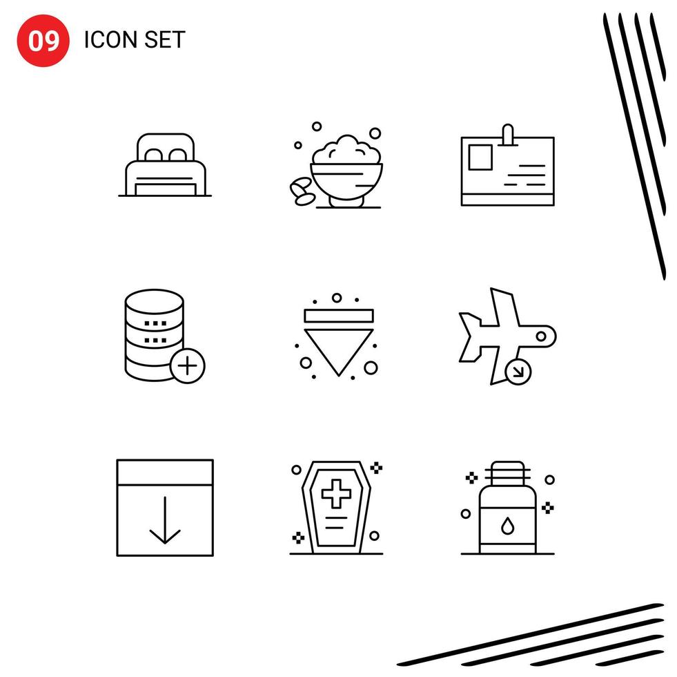 Group of 9 Outlines Signs and Symbols for add sal open server pass Editable Vector Design Elements Free Vector