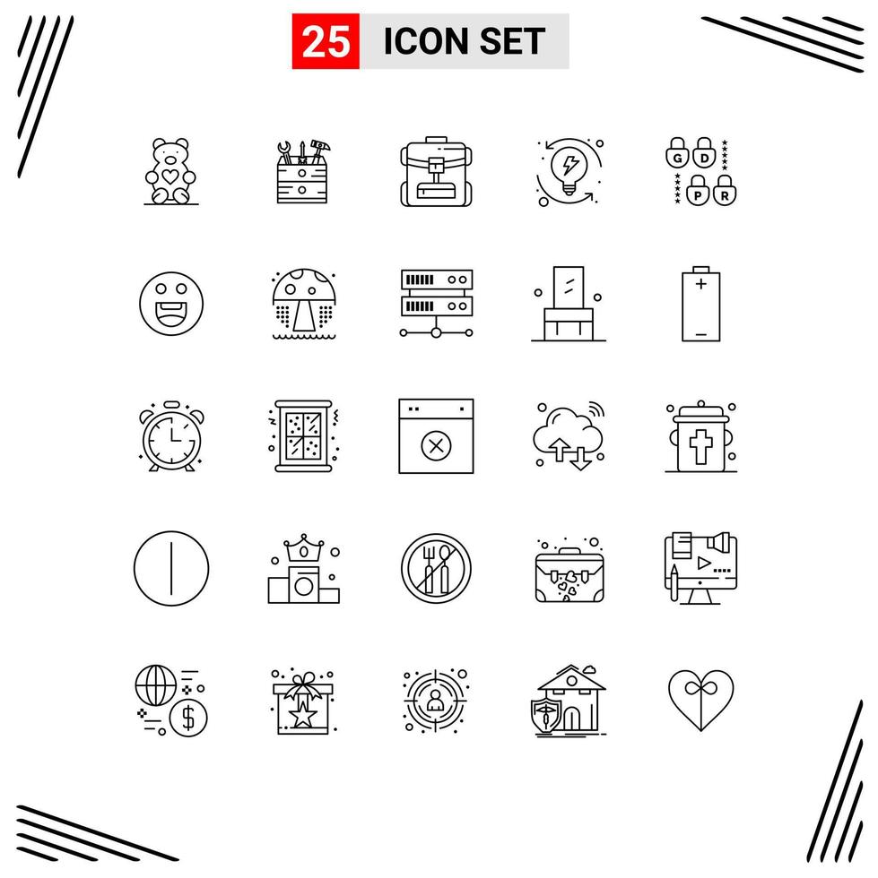 User Interface Pack of 25 Basic Lines of lock system bag progression development Editable Vector Design Elements Free Vector