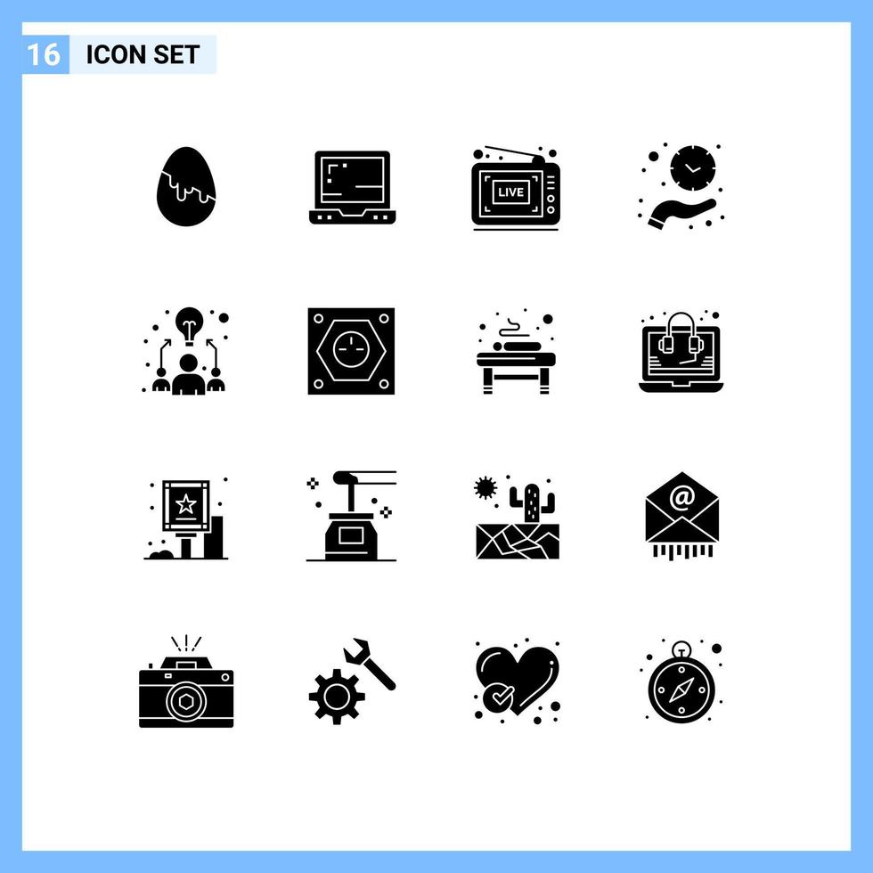 16 Thematic Vector Solid Glyphs and Editable Symbols of idea save time live time hand Editable Vector Design Elements Free Vector