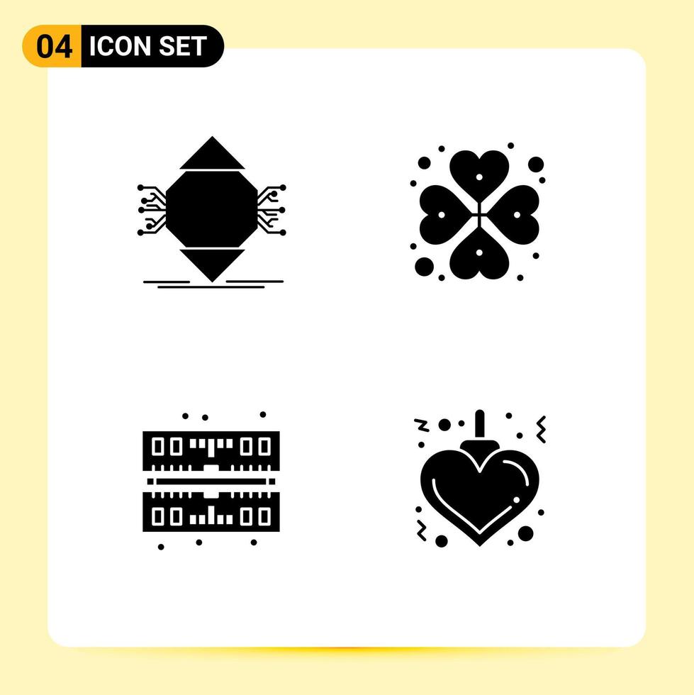4 Universal Solid Glyphs Set for Web and Mobile Applications ubicomp computer computer heart rose ram Editable Vector Design Elements