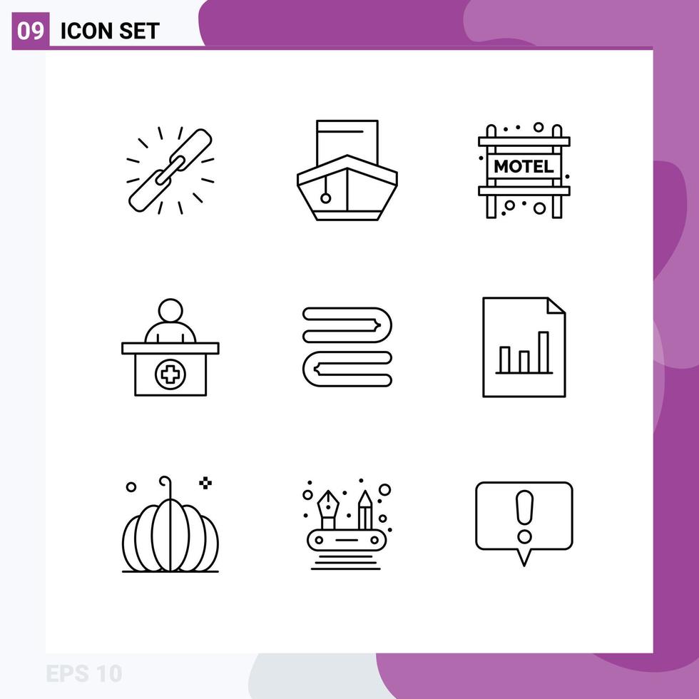 User Interface Pack of 9 Basic Outlines of clean receptionist transportation reception travel Editable Vector Design Elements Free Vector