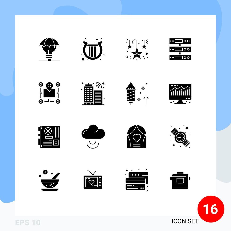 Set of 16 Vector Solid Glyphs on Grid for location cloud patrick storage server Editable Vector Design Elements