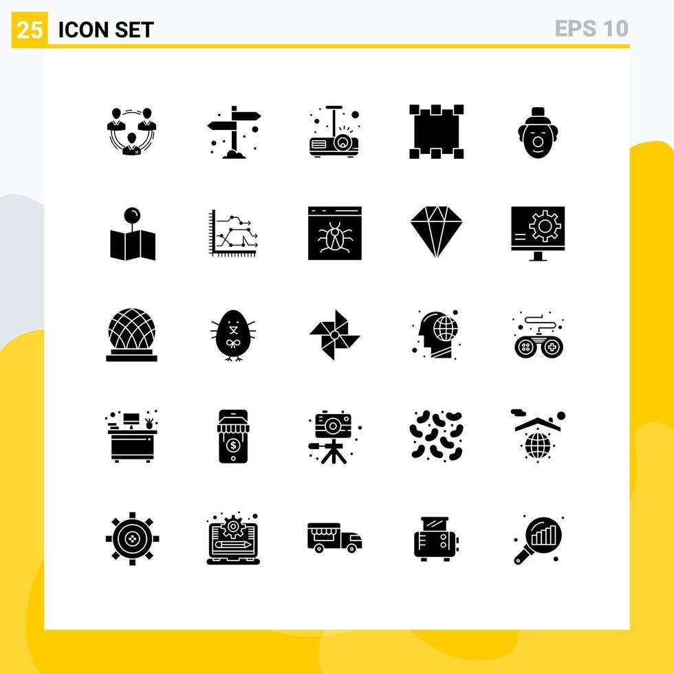 Group of 25 Modern Solid Glyphs Set for rectangle path camping light presentation Editable Vector Design Elements Free Vector