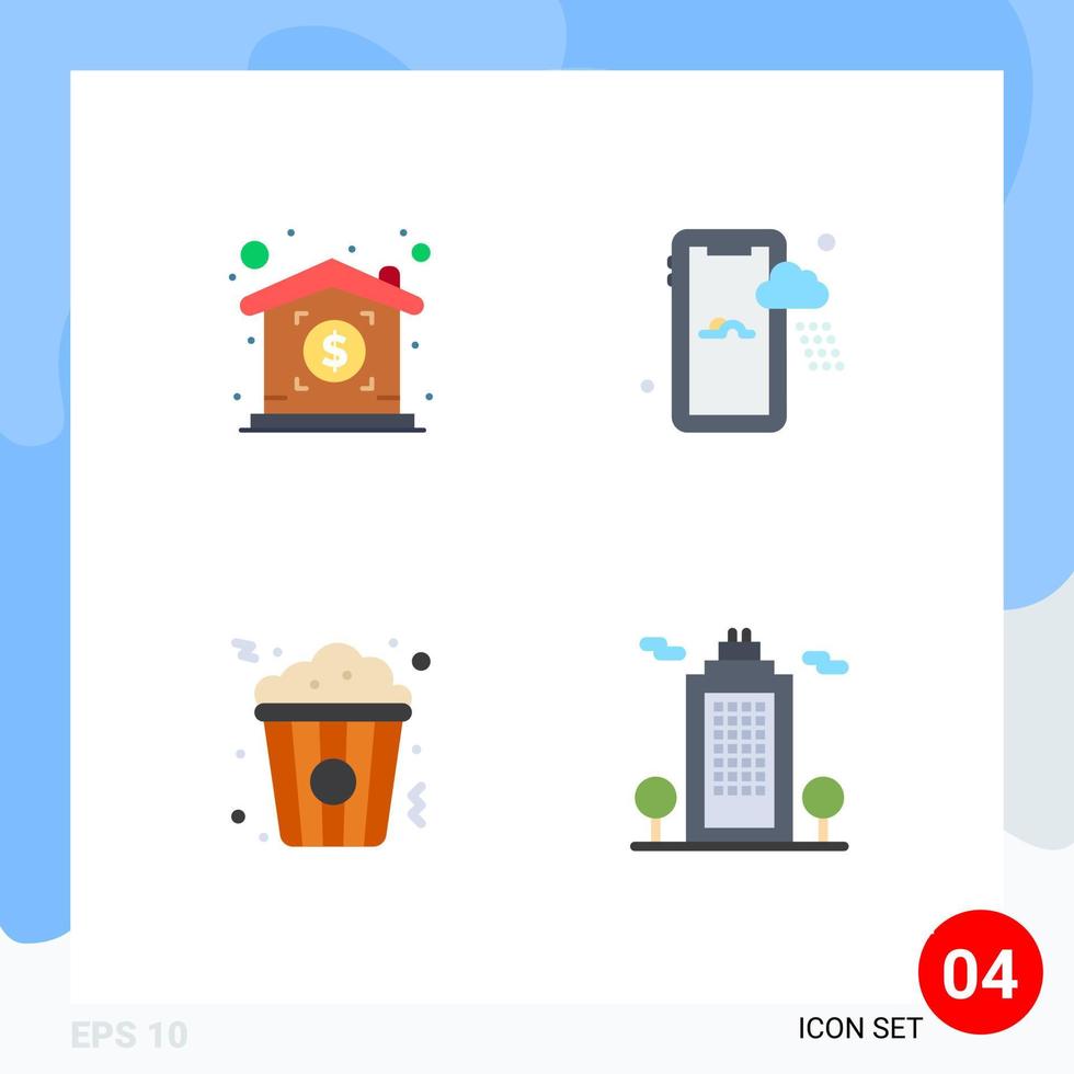 User Interface Pack of 4 Basic Flat Icons of investment food mobile popcorn cology Editable Vector Design Elements Free Vector