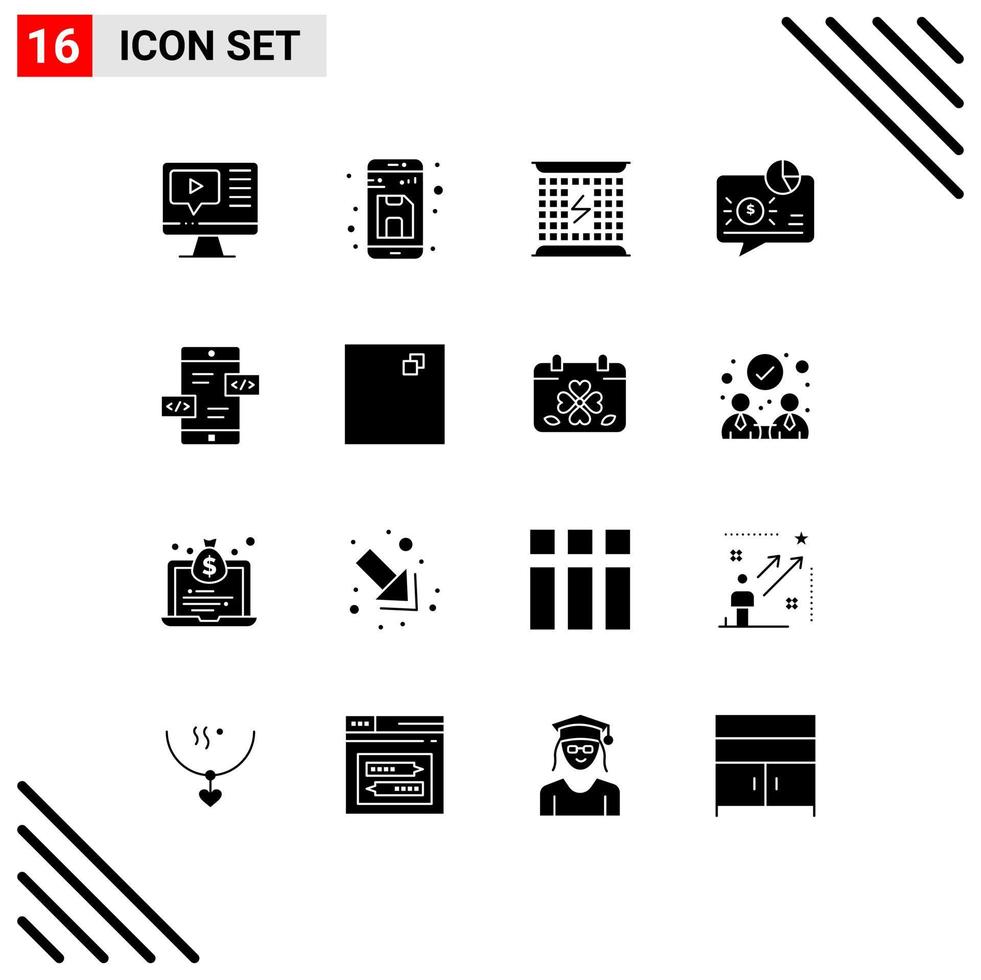 Universal Icon Symbols Group of 16 Modern Solid Glyphs of message communication up banking electromagnetic Editable Vector Design Elements
