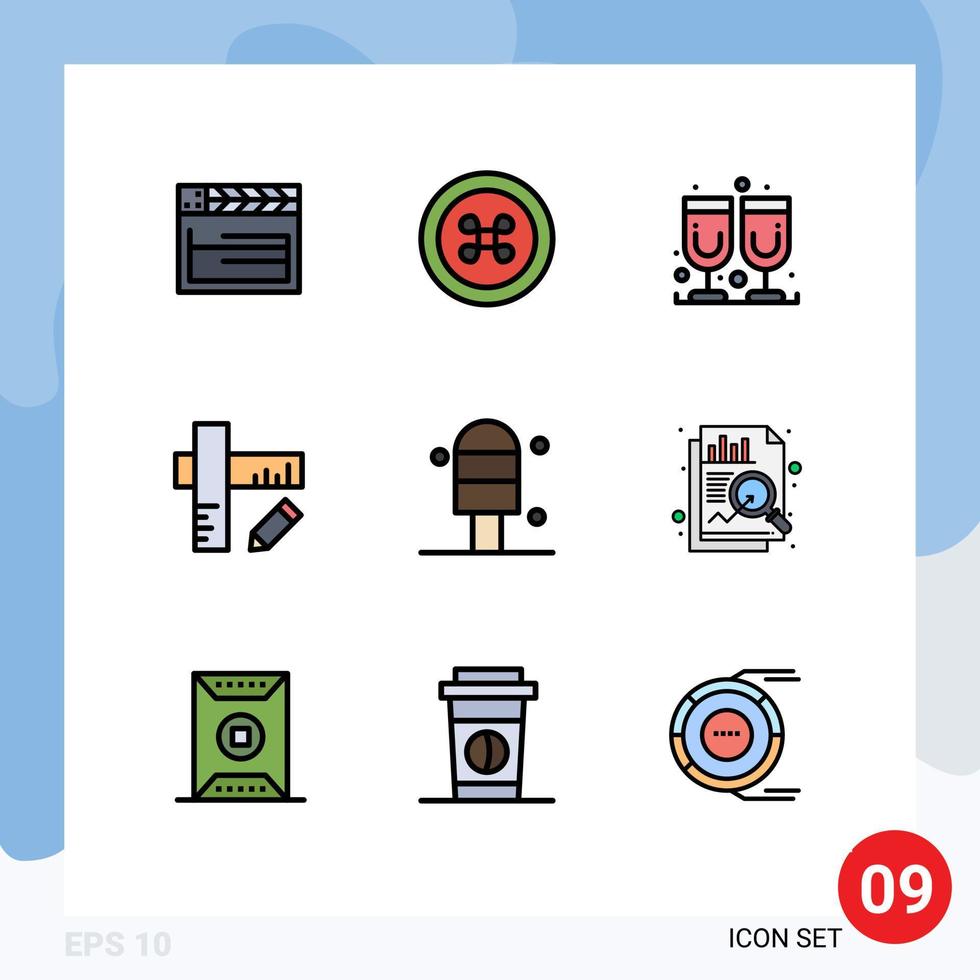 9 Creative Icons Modern Signs and Symbols of data analysis juice ice ruler Editable Vector Design Elements Free Vector