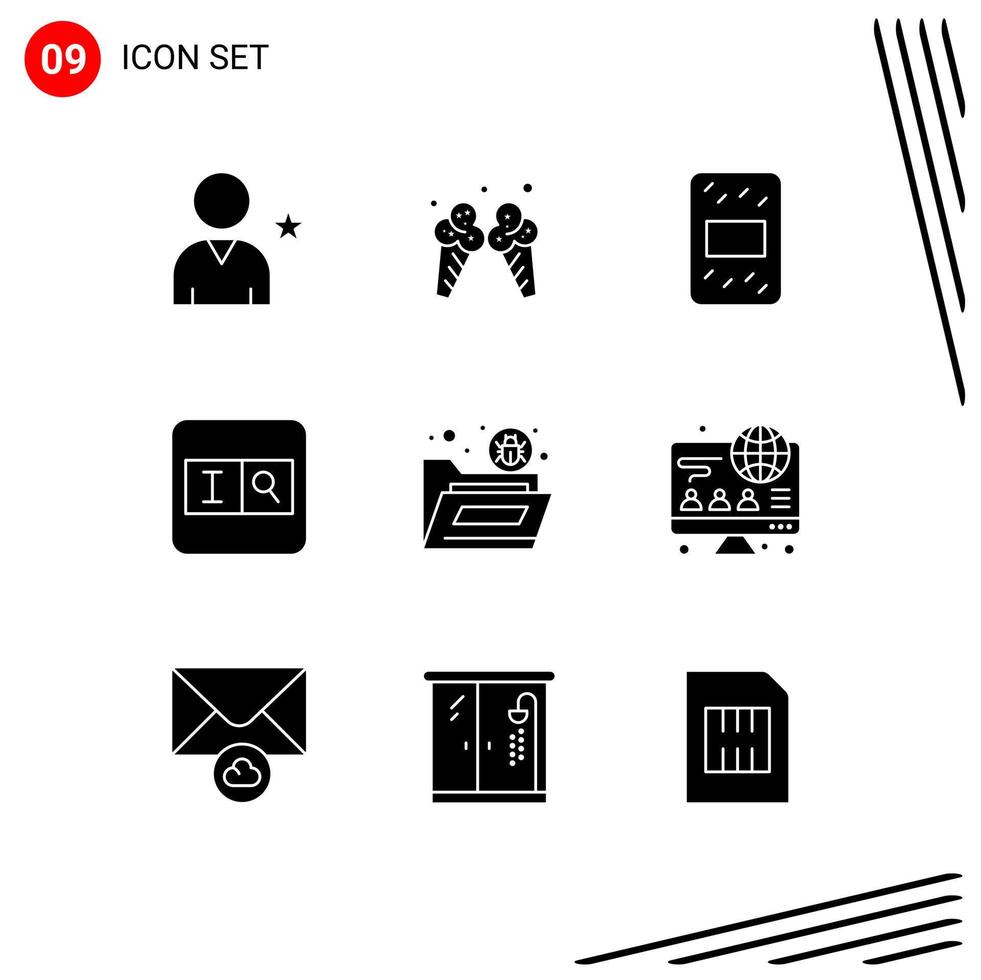 Modern Set of 9 Solid Glyphs and symbols such as security file grain bug search Editable Vector Design Elements Free Vector
