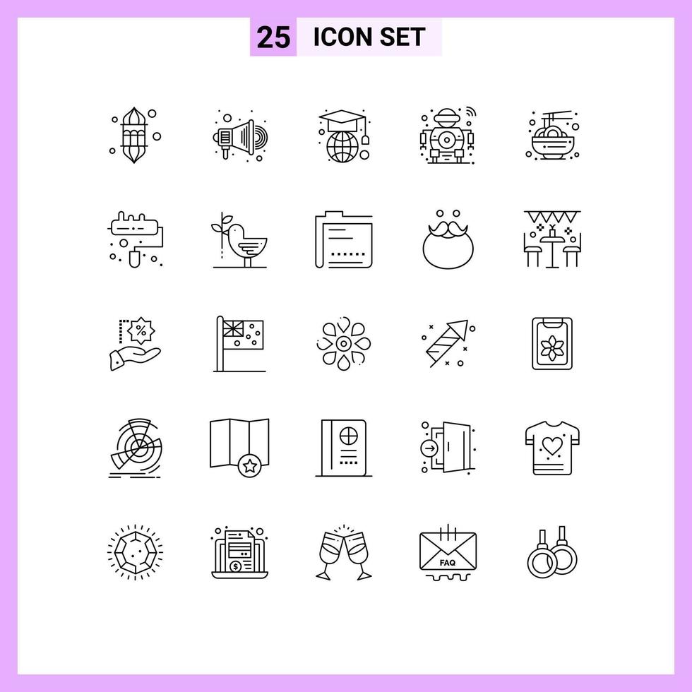 Set of 25 Vector Lines on Grid for chinese tech education smart robot Editable Vector Design Elements Free Vector