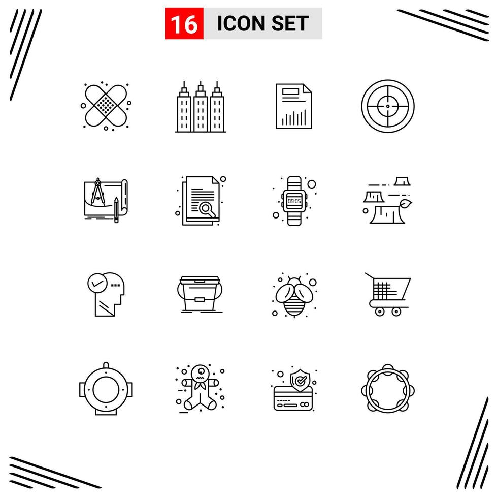 16 Universal Outlines Set for Web and Mobile Applications blueprint badge business army paper Editable Vector Design Elements