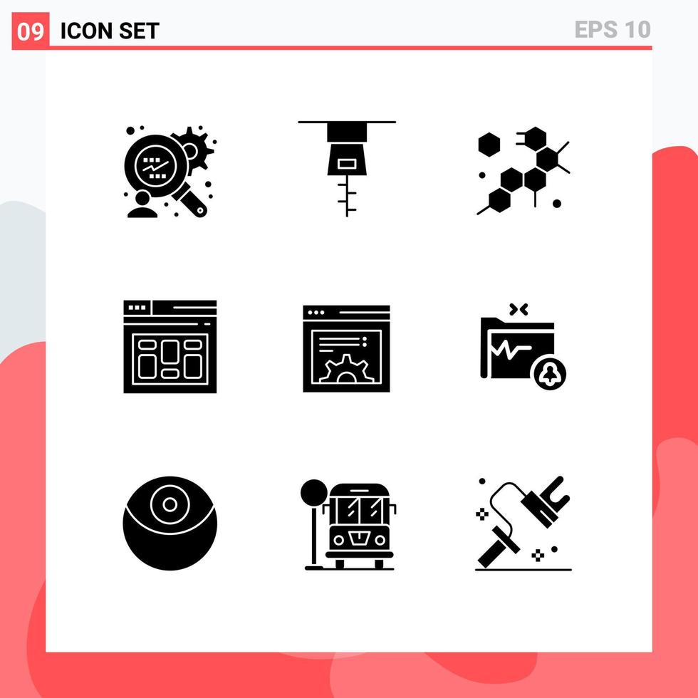 Pictogram Set of 9 Simple Solid Glyphs of safe folder folder database document setting Editable Vector Design Elements