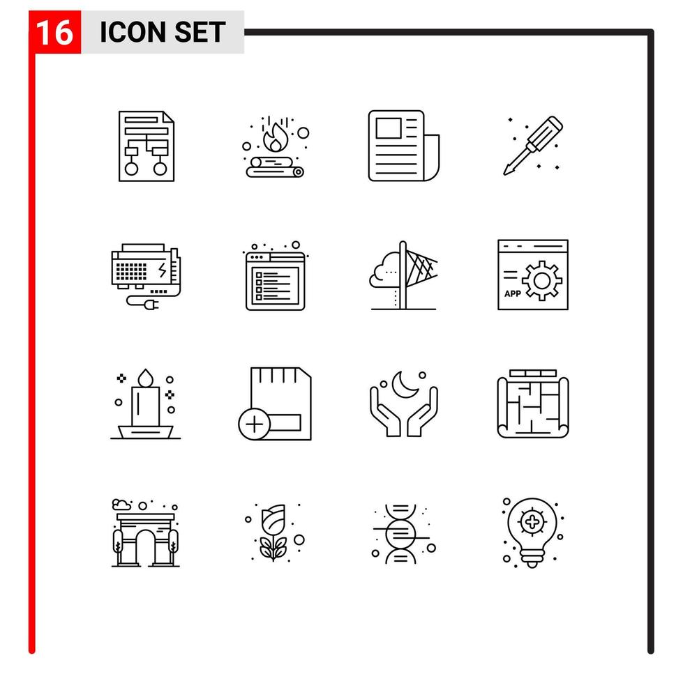 Modern Set of 16 Outlines Pictograph of apc plumbing flame plumber text sheet Editable Vector Design Elements