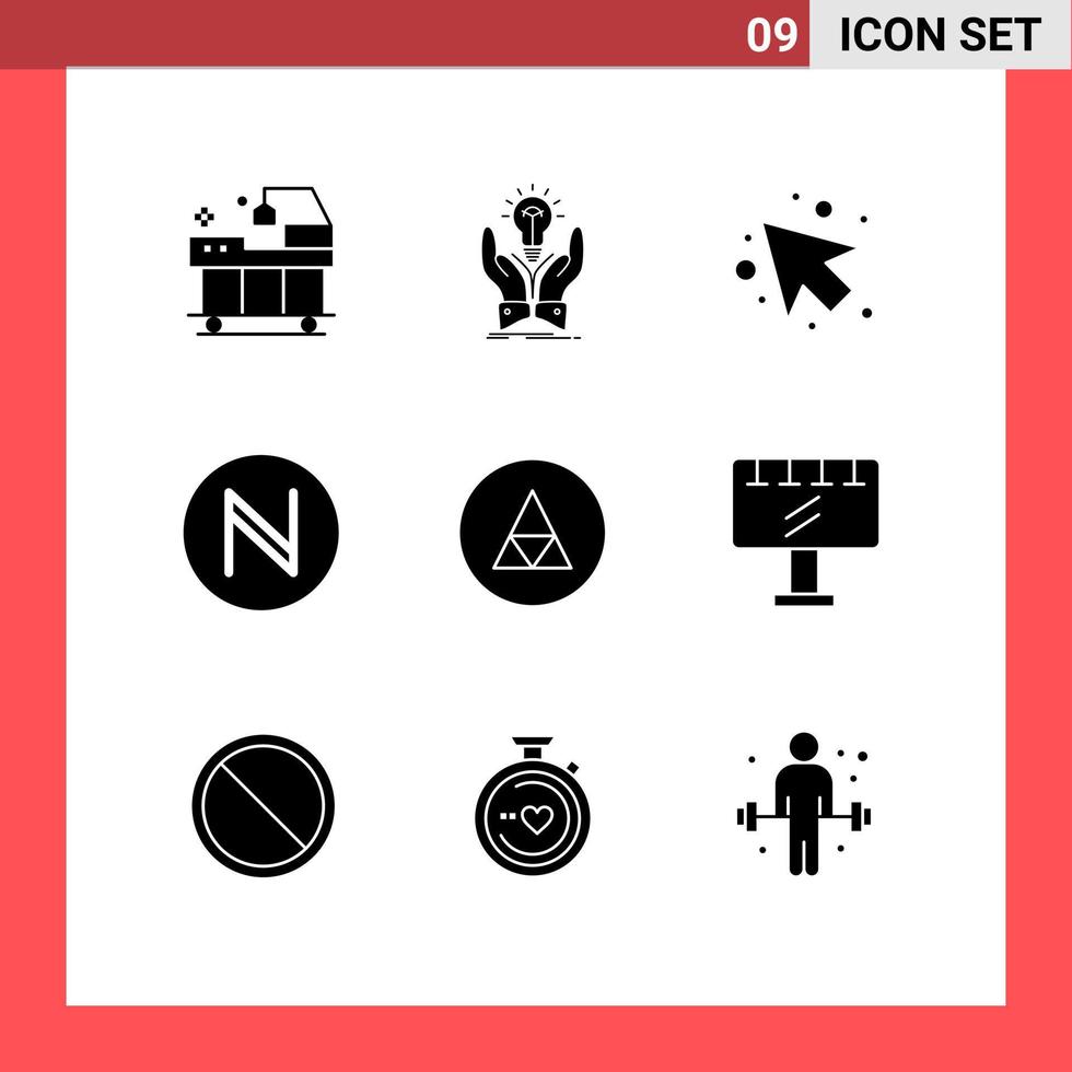 Editable Vector Line Pack of 9 Simple Solid Glyphs of sign magic hands cryptocurrency blockchain Editable Vector Design Elements Free Vector